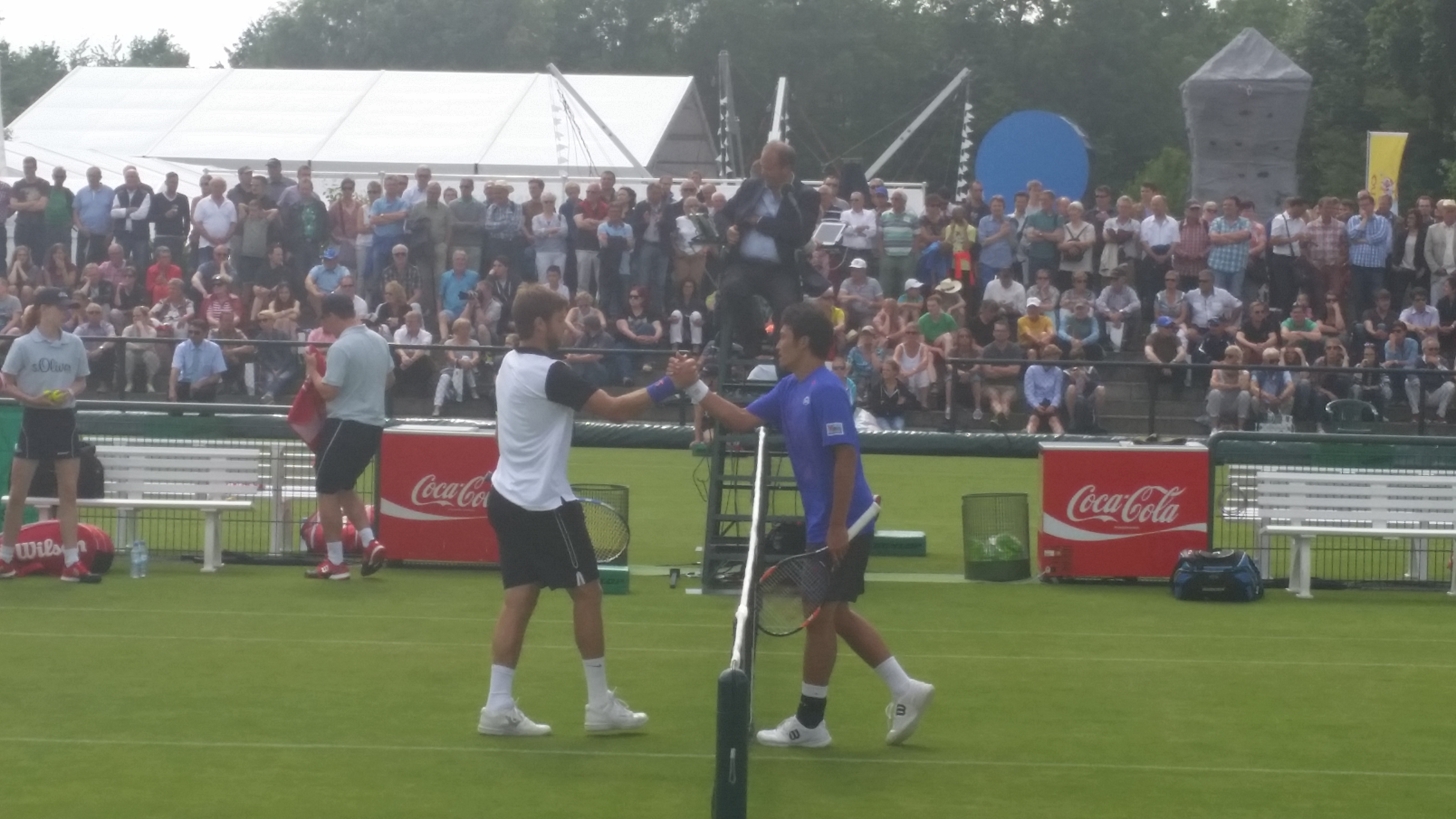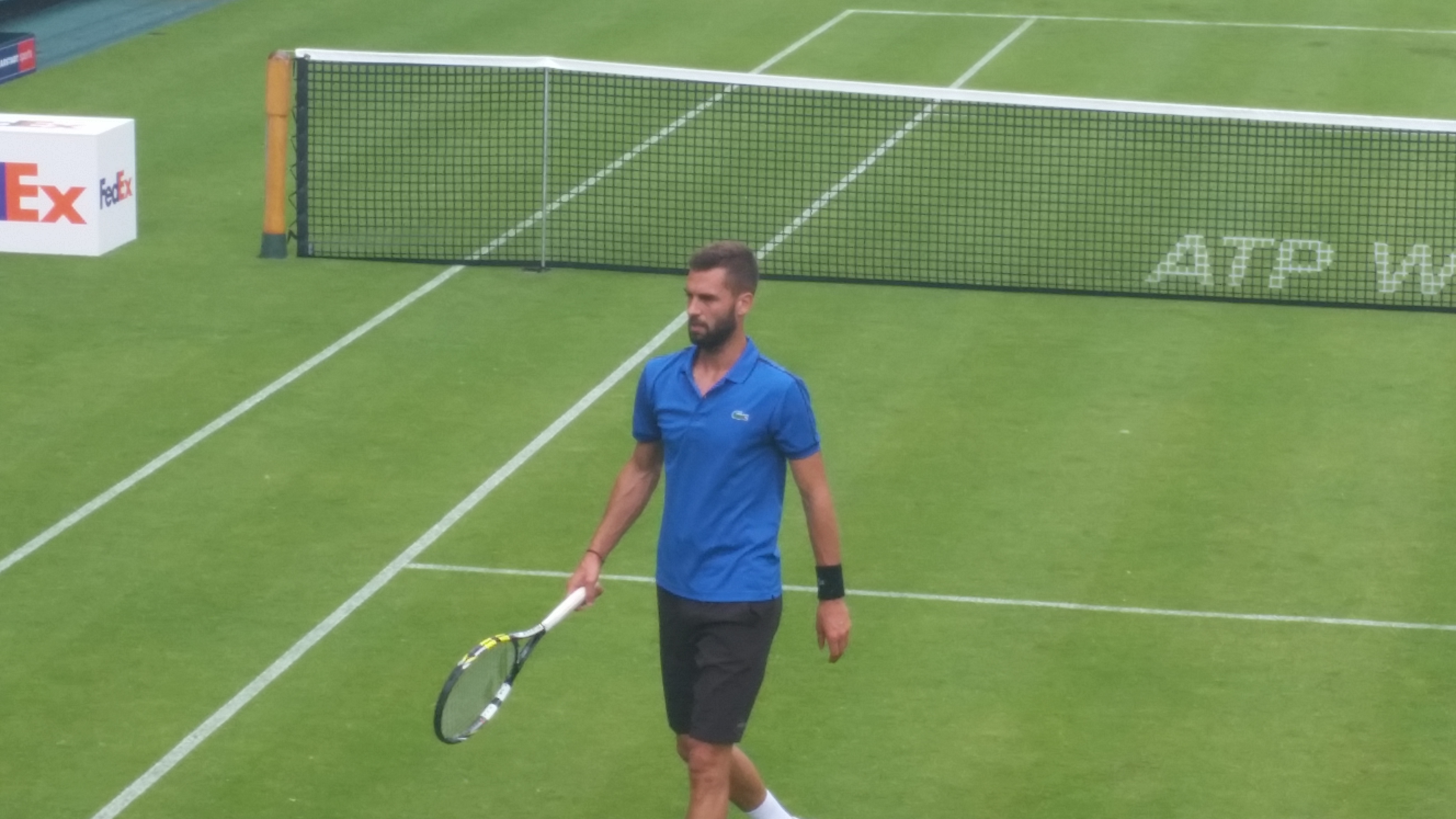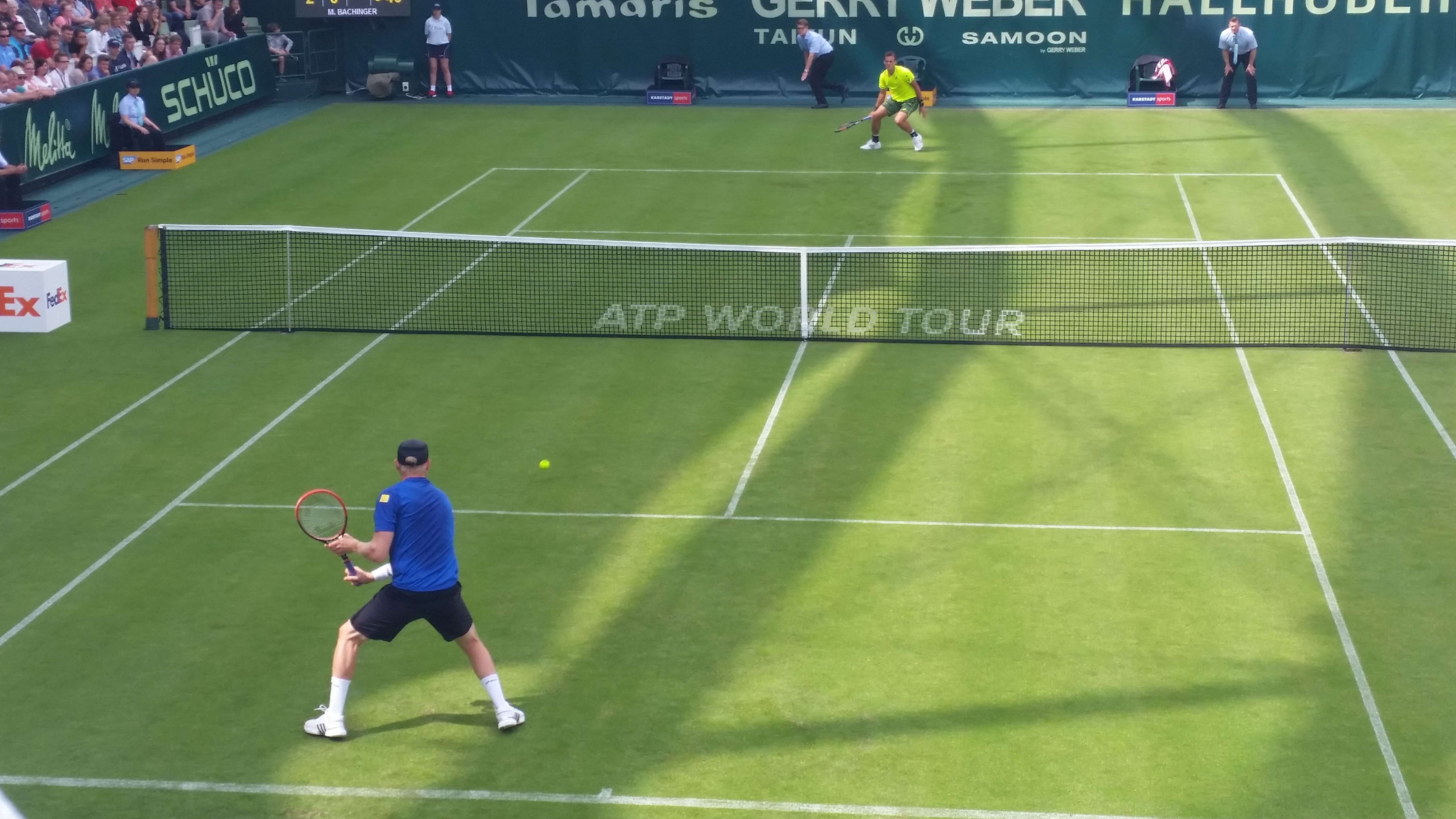 On a muggy, humid Saturday, play got underway in the Halle at 11:30 am. First out on court was Janko Tipsarevic — well, on the wrong court. Scheduled on Court 2, the Serb walked out on Court 1, where people slowly started settling in for the match between Benoit Paire and Tim Puetz.